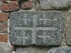 Die westliche Wand ist weitgehend geschlossen. Im Erdgeschoss ist eine kleine, rechteckige Pforte. Darüber ist leicht ausmittig nach Süden hin eine kreisförmige Öffnung. Darüber erhebt sich aus dem Satteldach eine rechteckige Turmhaube. Sie hat an der Nord-, Süd- und Ostseite je eine spitzbogenförmige Klangarkade. Darüber ist ein Pyramidendach mit Turmkugel und Wetterfahne.