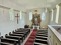 Zur weiteren Kirchenausstattung gehören eine hölzerne Taufe aus dem 18. Jahrhundert, eine Truhe aus dem 17. Jahrhundert sowie eine Holztür mit Eisenbeschlägen aus dem 18. Jahrhundert, die den Turmraum verschließt. Eine Gedenktafel erinnert an zwei 1866 und 1870 gefallene Brüder. Die Tafel war mit zwei Eisernen Kreuzen verziert, die in der Zeit der DDR entfernt werden mussten.[2]