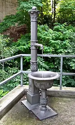 - An den Aussenwänden gegen den Fischingerbach sind Gegenstände zur Fischerei im Rhein zu sehen sowie eine 120 Jahre alte Wasserleitung.