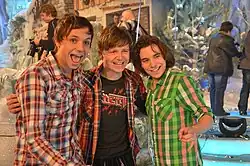 Die Dorfrocker (von links: Markus, Tobias und Philipp Thomann) nach ihrem Fernsehauftritt beim Winterfest der fliegenden Stars in der ARD am 28. Januar 2012 in Riesa