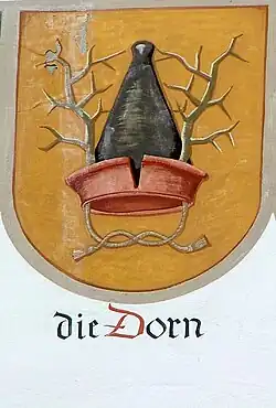 Eine Erwähnung für diese Familie stammt aus dem Jahr 1534, hierbei wird ein Mang Dorn als Bürger und Rat in Füssen genannt. 1601 wurde Raymund Dorn Bürgermeister zu Kempten. Er starb 1604.