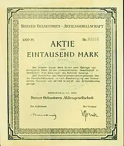 1926 stellte das Unternehmen Vierzylinder-Dieselmotoren für die Max Jüdel AG in Osnabrück her; Hermann Dorner war ab 1927 in den USA im Auftrag von Packard maßgeblich an der Entwicklung des ersten Dieselmotors für die Luftfahrt, dem Packard DR-980, beteiligt.[1][2][7]