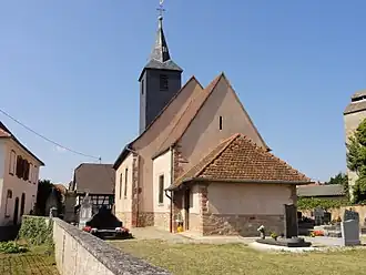 Die katholische Pfarrkirche St. Peter und Paul gehört zum Erzbistum Straßburg. Sie wurde im Zeitalter der Romanik errichtet, jedoch wie der größte Teil des Dorfes im Dreißigjährigen Krieg zerstört. Ihr heutiges Aussehen bekam die Kirche Ende des 18. Jahrhunderts (Jahreszahl auf dem Türsturz: 1781). Die Orgel stammt aus dem Jahre 1836 (Orgelbauer: Joseph Stiehr).