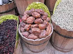 Die zerstoßenen Früchte werden wie Tee aufgebrüht und gesüßt kalt getrunken (Doum-Getränk).