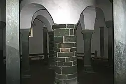 Bemerkenswert an der ansonsten weitgehend schmucklosen Kapelle sind die Säulen, speziell der Schmuck und die Ausführung der Kapitelle. Bis auf wenige Ausnahmen zeigen die Flächen der romanischen Würfel-Kapitelle reiche Verzierungen.