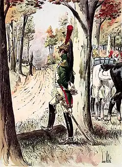 ![]() Offiziere der Dragons de la Garde impériale erhalten ihre Befehle von einem Aide de camp, Gemälde von Henri Dupray | |