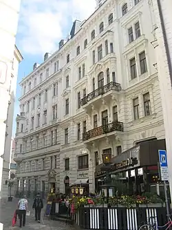Das Wohnhaus wurde 1881–1882 von Franz von Neumann im späthistoristischen Stil errichtet. Die Fassade gliedert sich in eine hohe genutete Sockelzone mit einem Korbbogenportal, und Mittel- und Seitenrisalite. Der Mittelrisalit wird besonders betont, da sich hier zwei Balkone mit Schmiedeeisengittern und zweigeschoßige Erker mit Wappen- und Maskenkartuschen befinden. In der Attikazone stechen Pyramidenstumpfdächer mit Ädikulafenstern hervor, die über den Risaliten liegen. Im Inneren liegt das stuckverkleidete Foyer, das sich nach hinten zu erweitert. Es ist durch toskanische Doppelpilaster, Ädikulanischen und Stuckdecken gekennzeichnet.
