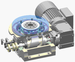 In Montagemaschinen, Schweißanlagen, Siebdruck- und Tampondruckanlagen bilden Rundschalttische mit Kurvenantrieb häufig das Herz einer Anlage. Der Rundschalttisch transportiert hierbei auf einem Zusatzschaltteller die Werkstücke von Station zu Station.
