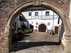 - der Herrschaftliche Hof, der sich besonders durch die massiven Außenmauern im Erdgeschoss der Hauptgebäude aus der üblichen Fachwerkbauweise heraushebt, z. B. Trierischer Hof, Spitalgasse 8 bis 16.[15]