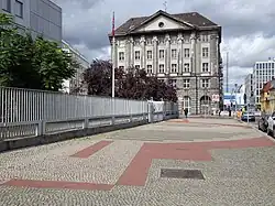 Grundriss der ehemaligen Dreifaltigkeitskirche markiert auf dem Bürgersteig vor der Nordkoreanischen Botschaft (Glinkastraße 5–7) gegenüber dem Glinka-Haus (Anton-Wilhelm-Amo-Straße 63).