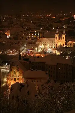 An die Kirche sind im Nordwesten ein Klostergebäude (auf dem Gelände des ehemaligen Ursulinenklosters) und ein Schulgebäude (heute Schwester Klara Fietz Volksschule)[1] der Grazer Schulschwestern angeschlossen.