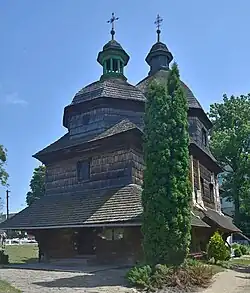 Die Kirche wurde 1720 errichtet, nachdem die Vorgängerkirche 1717 abbrannte. Der steinerne Glockenträger nördlich der Kirche wurde 1893 errichtet. Die Ikonostase erfuhr 1978/1979 eine Restaurierung.[1] Die Kirche ist ein Baudenkmal von nationaler Bedeutung und wurde 2010 mit sieben weiteren Holzkirchen in der Ukraine in die Tentativliste des Weltkulturerbes aufgenommen. Die Einschreibung erfolgte am 21. Juni 2013 gemeinsam mit acht weiteren Objekten der Ostkirchen in Polen.