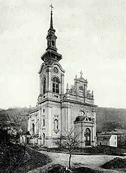 Die Dreifaltigkeitskirche wurde im Stil des Neobarock errichtet. Der Bau der Kirche wurde durch die großzügige Unterstützung des damaligen Besitzers der größten Fettverarbeitungsfabrik Europas, Johann Schicht, ermöglicht. Entworfen wurde sie von dem renommierten Architekten Max Loos von Losimfeldt aus Teplice (Teplitz). Die Grundsteinlegung fand am 19. Mai 1901 statt, während die feierliche Kirchweihe am 1. Juli 1903 vollzogen wurde. Die Glocke, die ursprünglich in einer 1896 abgebrochenen Kirche in der Region stammte, wurde als Geschenk der Stadt Aussig im Turm aufgehängt. Aufgrund des Wachstums und der massiven Bebauung des Stadtteils erhielt die Straße vor der Kirche im Jahr 1930 als Damaschkestraße den Namen des Bodenreformers Adolf Damaschke. Im Jahr 1938 wurde sie in Horst-Wessel-Straße umbenannt. Während des Zweiten Weltkriegs erlitt die Kirche Schäden durch einen Bombenangriff am 16. Dezember 1944, bei dem die Bomben direkt neben der Kirche explodierten; dennoch überstand sie den Angriff. Nach Kriegsende erhielt die Straße den tschechischen Straßennamen Jeseninova.[1][2]