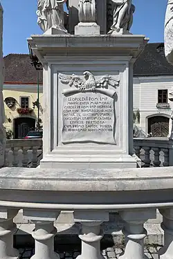 - ↑ a b c d e Wolfgang Klug: Barocke Pracht der Pestsäule. In Perchtoldsdorfer Rundschau, 09.2008 (Online, Internet-Archive)