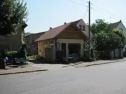 Das bis 2012 denkmalgeschützte,[2] zweigeschossige Wohnstallhaus steht giebelständig an der linken Seite eines schmalen, langen Grundstücks; das Gebäude hat ein ziegelgedecktes Satteldach, dazu einen verputzten Giebel mit zwei Fensterachsen sowie im Giebel zwei enger zusammenstehende Rundbogenfenster. Das Erdgeschoss ist massiv, das Obergeschoss wohl aus Fachwerk. Auf der linken Seite steht ein gebäudeschafthoher, eingeschossiger Flachdachanbau mit zwei großen Rechteckfenstern zum Anger. Dieser nachträgliche Anbau diente ursprünglich als Gaststube.