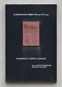 Die Druckerei Jahoda & Siegel wurde 1893 in Wien gegründet. Sie verlegte ab 1901 die Zeitschrift Die Fackel. Eigentümer des Verlags waren Georg Jahoda und Friedrich Siegel. Nach dem Tod Georg Jahodas 1926 führte dessen Sohn Martin Jahoda die Geschäfte gemeinsam mit Siegel weiter. 1938 wurde das Unternehmen „arisiert“, Jahoda und Siegel emigrierten in die USA.