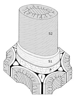 - Die Sekundärwand 1 ist im Druckholz beträchtlich dicker als im Normalholz und kann in den Zellecken sogar die Dicke der Sekundärwand 2 erreichen.