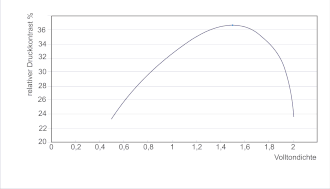 Mit steigender Farbführung (Volltondichte) steigt der relative Druckkontrast erst an, geht durch ein Maximum und fällt dann wieder ab. Die Volltondichte im Maximum stellt das bildtechnische Optimum für die Farbführung dar. Der relative Druckkontrast wird durch die Druckmaschine, den Bedruckstoff, die Druckfarbe, die Rasterung und die Druckbedingungen beeinflusst, gilt deshalb nur für einen gegebenen Satz von Parametern. Seine Bedeutung sinkt mit der sich ausbreitenden Standardisierung im Druck.