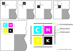 - (auch Passer) sind meist Linien, Kreuze oder Kreise zur genauen Positionierung der einzelnen Farben aufeinander.