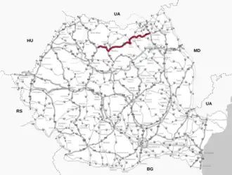 | Straßenende: | Suceava (47° 39′ 6″ N, 26° 13′ 33″ O) | |||||||||||||||||||||||||||||||||||||||||||||