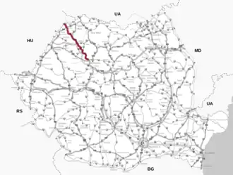 | Straßenende: | Urziceni (47° 44′ 49″ N, 22° 23′ 36″ O) | ||||||||||||||||||||||||||||||||||||||||||