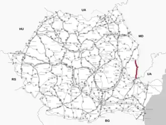 | Straßenbeginn: | Galați (45° 26′ 29″ N, 28° 2′ 9″ O) |