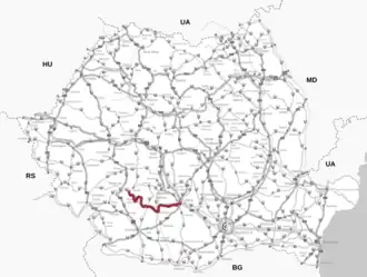 | Straßenbeginn: | Scoarța (45° 1′ 0″ N, 23° 28′ 4″ O) | |||||||||||||||||||||||||||||||||