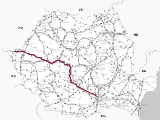 | Straßenende: | Nădlac (46° 10′ 5″ N, 20° 42′ 55″ O) | |||||||||||||||