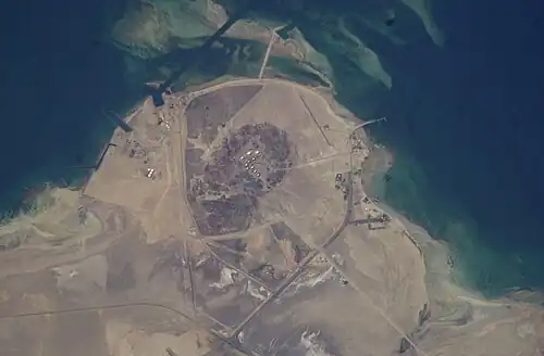 - im Norden eine ca. 2,4 km lange, militärisch bewachte Start- und Landebahn für Flugzeuge;