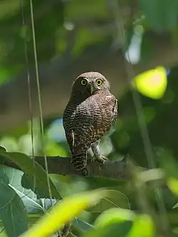 Der Dschungelzwergkauz (Glaucidium radiatum, Syn.: Taenioglaux radiatum), auch Dschungel-Sperlingskauz oder Dschungelkauz genannt, ist eine kleine Eulenart aus der Gattung der Sperlingskäuze (Glaucidium). Der Dschungelzwergkauz ist eine auf dem indischen Subkontinent weit verbreitete und häufige Art. Es werden mehrere Unterarten unterschieden.[1]