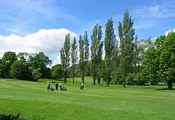 Im nördlichen, vom Golfclub genutzten Bereich des Parks liegt ein künstlich angelegter Teich. Ein zweites nur unweit davon liegendes Gewässer verschwand etwa um 1900.[3] Im Park sind aber noch Reste der einstigen Kaskadenanlagen und Kanäle zu finden. In der Nähe des Teichs steht ein von William Chambers entworfener Gartenpavillon in Form eines kleinen Rundtempels.[18] Er steht – wie das Herrenhaus – seit dem 14. Juli 1966 als Listed Building der Kategorie A unter Denkmalschutz.[19] Sein Dach wurde 1973 von Schülern der Holy Rood High School instand gesetzt. Mit einem Eiskeller aus dem 18. Jahrhundert gibt es noch einen weiteren denkmalgeschützten Bau im Park (Kategorie C).[20]