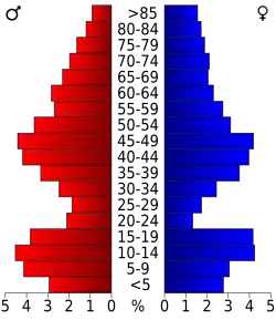 Auf das gesamte County bezogen setzte sich die Bevölkerung zusammen aus 27,4 Prozent Einwohnern unter 18 Jahren, 5,8 Prozent zwischen 18 und 24 Jahren, 23,6 Prozent zwischen 25 und 44 Jahren, 25,9 Prozent zwischen 45 und 64 Jahren und 17,4 Prozent waren 65 Jahre alt oder darüber. Das Durchschnittsalter betrug 41 Jahre. Auf 100 weibliche Personen kamen 104,2 männliche Personen. Auf 100 Frauen im Alter von 18 Jahren oder darüber kamen statistisch 103,6 Männer.
