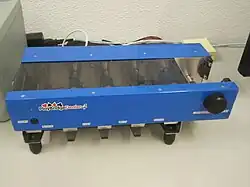 Eine Dupliziermaschine wird benutzt, um für das Kartenspiel Bridge eine als Datei vorliegende Verteilung von Karten mit physischen Spielkarten zu realisieren. Dazu wird ein Board verwendet, in dessen 4 Fächer die 52 Karten eines unsortierten Kartenpaketes von der Maschine platziert werden.