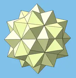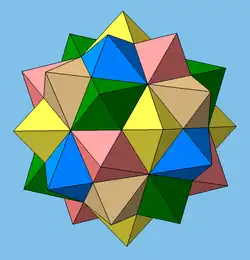 Die Durchdringung von fünf Oktaedern stellt einen Sternkörper dar, der aus einer geeigneten Zusammenstellung von fünf Oktaedern, die im Ikosidodekaeder zu finden sind, entsteht.