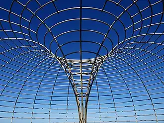 Künstlerisch gestalteter Käfig auf der Aussichtsplattform des Turmes