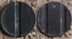 Duschmarken haben normalerweise einen Durchmesser von zwei bis drei Zentimetern, meist unterschiedliche Profile auf den beiden Seiten oder ein Loch in der Mitte.[1] Sie bestehen zumeist aus Metall (Messing,[2] Zink(legierung)[3] etc.), was eine längere Lebensdauer bei der Wiederverwendung bedingt; die Duschautomaten werden regelmäßig geleert. In speziellen Fällen können Duschmarken den Namen der Institution tragen, in der sie verwendet werden.[2][4] Diese besonderen Wertmarken haben einen eigenen numismatischen Sammlermarkt.