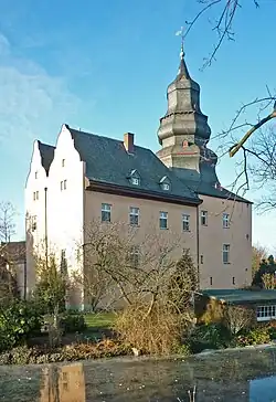 Ehemals als einfache Wasserburg errichtet, wurde das Haupthaus im 17. Jahrhundert (Fertigstellung 1666) zu einem repräsentativen Herrenhaus im barocken Stil umgebaut. Auffällig ist vor allem die aufwändige Dachhaube des Turms, die in ihrer Art einzigartig im Rheinland ist.