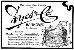 Nach der Gründung der Firma Dyes & Co. 1901 durch die Brüder Otto-Ferdinand und Gottfried Hermann Dyes sowie Viktor Schmidt fertigte die Möbelfabrik an der Podbielskistraße unter Zuhilfenahme des frisch eingeführten elektrischen Kraftantriebs anfangs neben Büromöbeln auch Betten und Matratzenrahmen aus Holz.[1]
