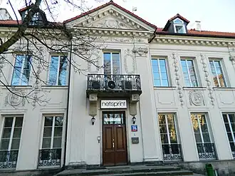 - ↑ Piotr Blank (1742–1797) war ein Warschauer Bankier und Finanzberater vom polnischen König Stanisław August Poniatowski bis 1784. Er stammte aus einer Familie französischer Hugenotten, die im 16. Jahrhundert nach Berlin emigriert waren. Ein weiterer Palast in seinem Besitz war der Blank-Palast.