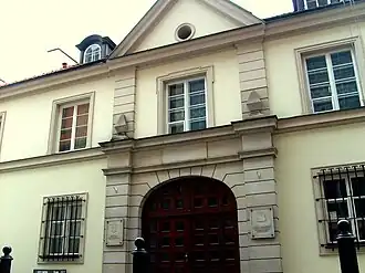 Im Jahr 1944 wurde das Objekt von Stanisław Marzyński neu entworfen, da die ursprünglichen Dokumentationen nicht mehr erhalten waren. Dabei wurde überlieferte Elemente der rückwärtigen Fassade in die der Straße zugewandten Frontseite integriert. Der Wiederaufbau mit einer Galeriedurchfahrt erfolgte in den Jahren 1966 bis 1968. Heute befinden sich in dem denkmalgeschützten[2], zweigeschossigen Gebäude mit dem mittigen Dreiecksgiebel über der Durchfahrt die Büros der Polnischen Episkopats. Zukünftig soll hier das Museum der Warschauer Erzdiözese untergebracht werden.