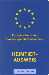 Seit dem 29. Dezember 2014 legt die Verordnung (EU) Nr. 576/2013[2] die Bedingungen für eine Mitnahme von Heimtieren, etwa bei Reisen in einen Mitgliedstaat, EU-weit einheitlich fest. Dazu gehört das Mitführen eines entsprechenden Ausweises. Die Anforderungen an Format, Layout und Sprache des Ausweises für Hunde, Katzen und Frettchen ergeben sich aus der Durchführungsverordnung (EU) Nr. 577/2013.[3] Vor dem 29. Dezember 2014 ausgestellte Ausweise bleiben nach Art. 44 der Verordnung 576/2013 gültig.