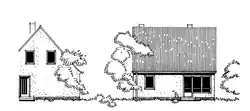 - EW 41 – teilunterkellert, ohne Windfang und mit Eingang von der Giebelseite. Im Grundriss mit separatem Esszimmer als Erweiterung zum Wohnzimmer.