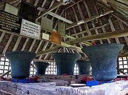 - Kirche St. Mary the Virgin mit einem besonderen Glockenstuhl. Die Glocken sind ungewöhnlich montiert, sie sind nicht wie allgemein üblich hängend an einem Joch, sondern stehend an ihrer Krone befestigt.[2] Sie werden von neben den Glocken stehenden Personen betätigt.