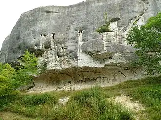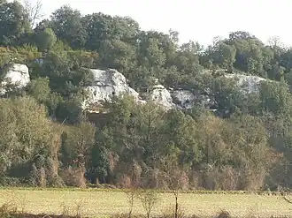 Steilwand des Oberturons unterhalb des Ortskerns von Puymoyen
