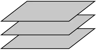 Ist die Trägergerade eine Ferngerade, so liegen alle Ebenen des Ebenenbüschels zueinander parallel (Parallelebenenbüschel).[1] In diesem Fall enthält das Ebenenbüschel auch die Fernebene des Raumes.