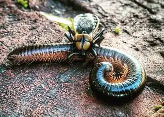 Ectrichodia crux erbeutet einen Doppelfüßer | ||||||||||||