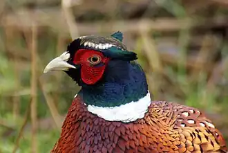 Porträt eines Fasanenhahns mit den gattungstypischen Federohren | ||||||||||||