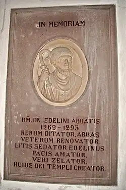 1259 ist er als Dekan des Klosters belegt. Der genaue Zeitpunkt seines Amtsantritts als Abt ist nicht bekannt. Sein Vorgänger, Friedrich, starb nach dem 23. November 1262[Anm. 1], der Amtsantritt von Edelin muss also danach erfolgt sein. Als Abt stand er vor allem vor dem Problem, dass Besitz des Klosters zunehmend von anderen beansprucht wurde. Um dem entgegenzuwirken und beweiskräftige Besitztitel vorweisen zu können, ließ Edelin die vorhandenen Besitz-Urkunden sichten und daraus ein systematisches Güterverzeichnis anfertigen. Ergebnis war das heute „Codex Edelini“ oder „Liber Possessionum“ genannte Verzeichnis.[2]