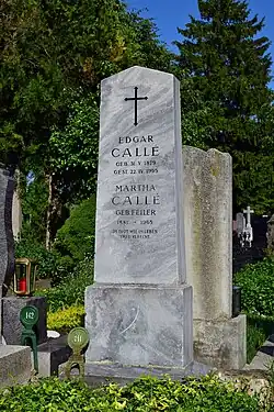 Er ruht auf dem Evangelischen Friedhof des Wiener Zentralfriedhofs (IV,141).