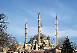Die im Jahr 1575 vom Architekten Sinan erbaute Selimiye-Moschee, die zum UNESCO-Weltkulturerbe gehört, und die Rüstem-Pascha-Karawanserei (1554) sind die bekanntesten Bauwerke. Weitere sehenswerte Moscheen sind die Eski Cami (Alte Moschee; 1414), Üç Şerefeli Cami (Moschee mit drei Balkons [auf dem höchsten Minarett]; 1447) sowie der im Nordwesten außerhalb des Zentrums gelegene, 1488 fertiggestellte Gebäudekomplex von Sultan Beyazıd II., Sultan Bayezit II Külliyesi, der um eine zentrale Moschee eine Medizinschule, ein Krankenhaus (Darüşşifa), Gästehäuser (Tabhane), ein türkisches Bad (Hamam), Verwaltungsgebäude und eine Grundschule enthielt.[12]
